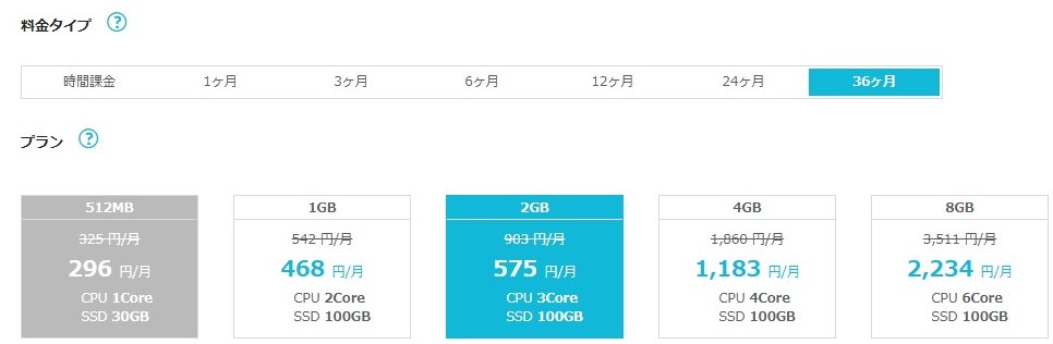 プランはメモリ2GB、CPU3Core。